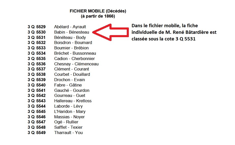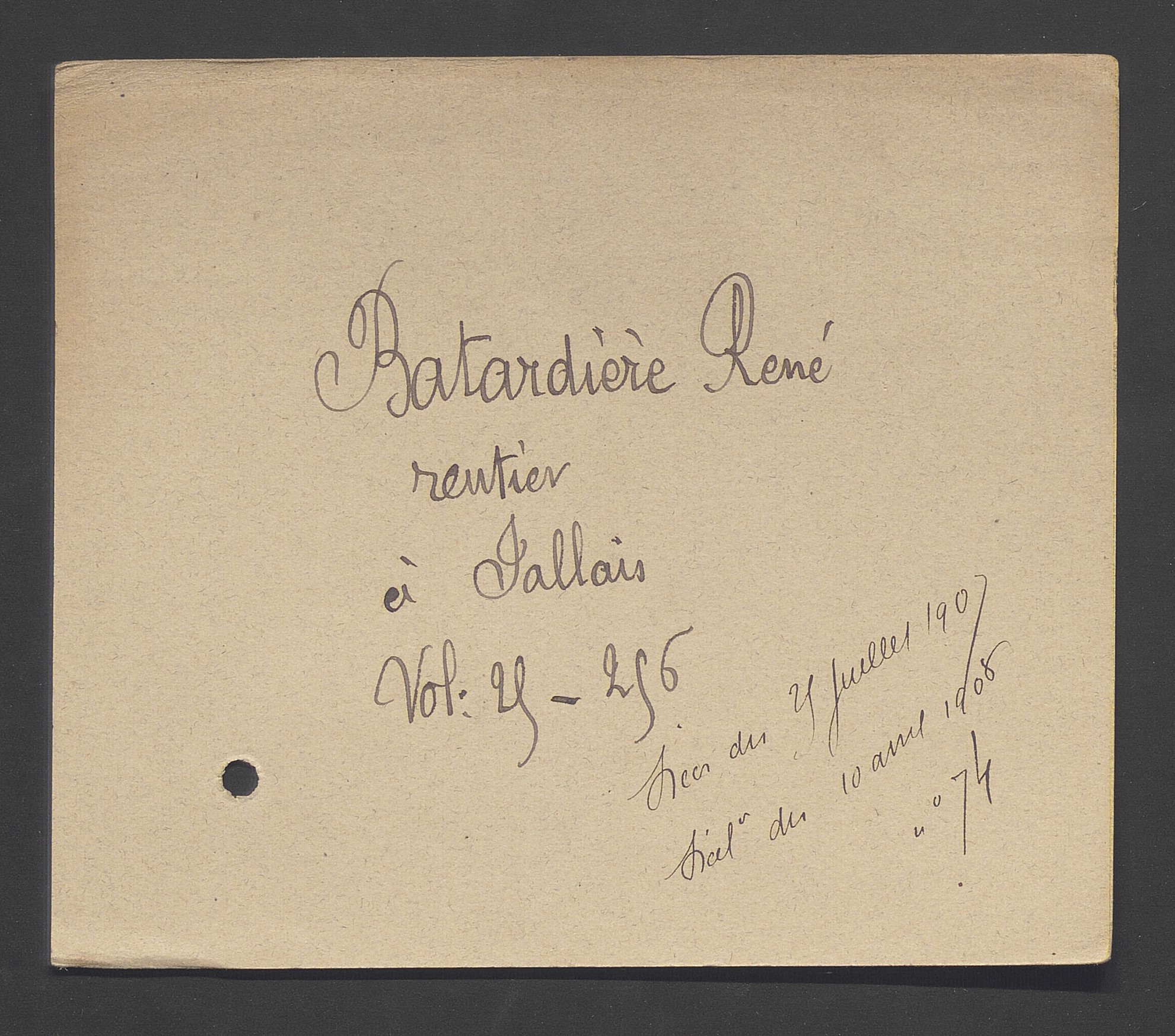 Le compte individuel de René Bâtardière est inscrit dans le volume 25, case n° 256, du répertoire général de l’Enregistrement.
