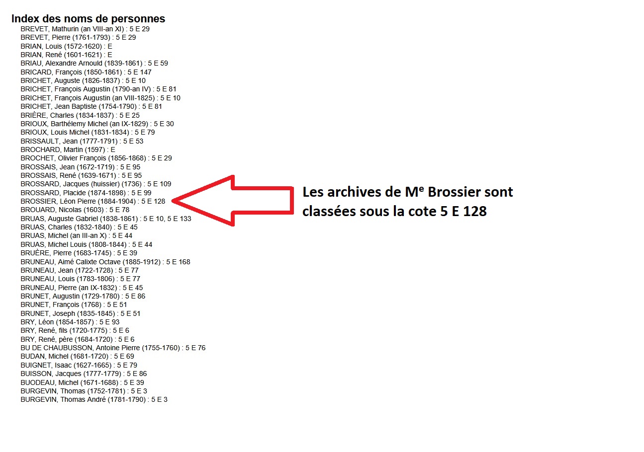Pour la période à partir de 1800, la liste des notaires établis dans le Maine-et-Loire permet de savoir si un notaire a versé ses archives aux Archives départementales ou si elles se trouvent encore dans son étude.